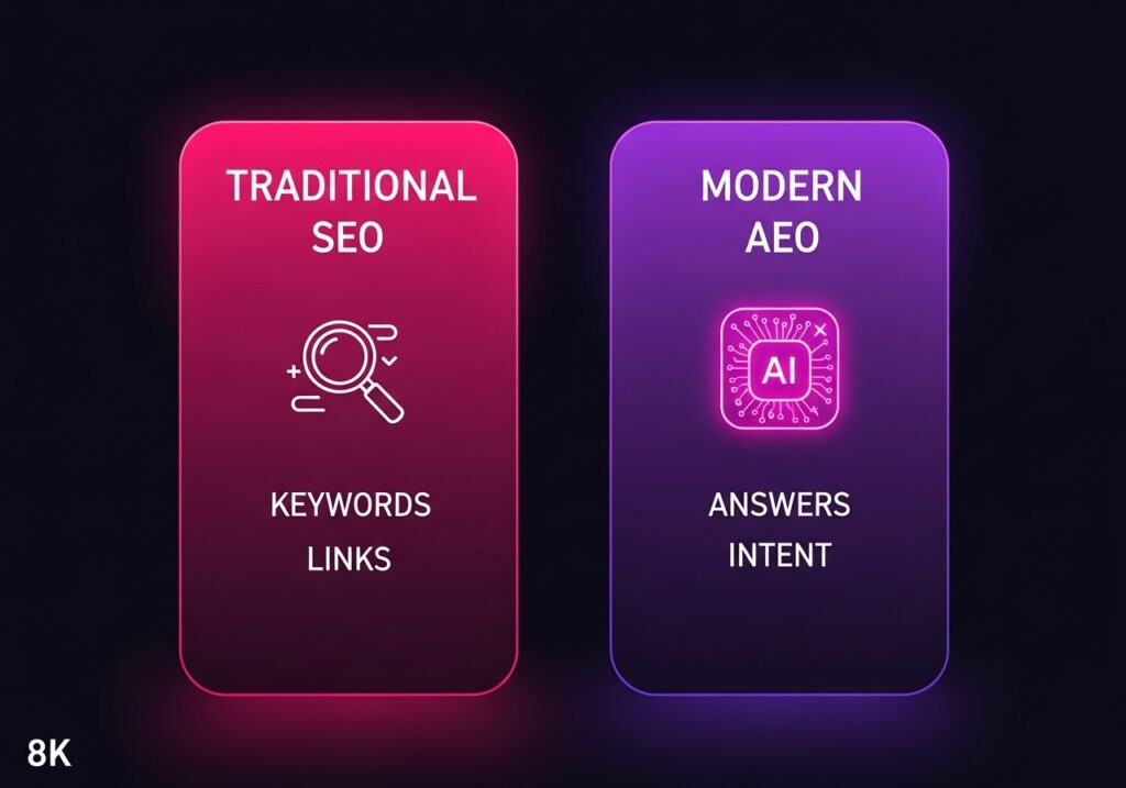 Traditional SEO is designed to help a website rank in the "Ten Blue Links" on a Google Search Results Page (SERP). You provide great content, Google indexes it, and a user clicks your link to find their answer.